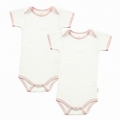 Tadpoles Bodysuits, Short Sleeved Organic Cotton, Pink Trim 6-9mo