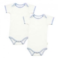 Tadpoles Bodysuits, Short Sleeved Organic Cotton, Blue Trim 0-3 mo